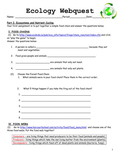 Download ECOLOGY WEBQUEST ANSWER KEY Library Binding BookBoon